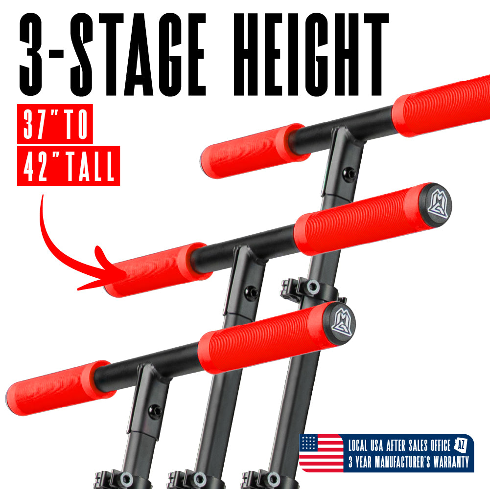 Madd Gear Black and Blue Adjustable Grind Rail in three different angles– Setup View for Scooter Trick Practice
