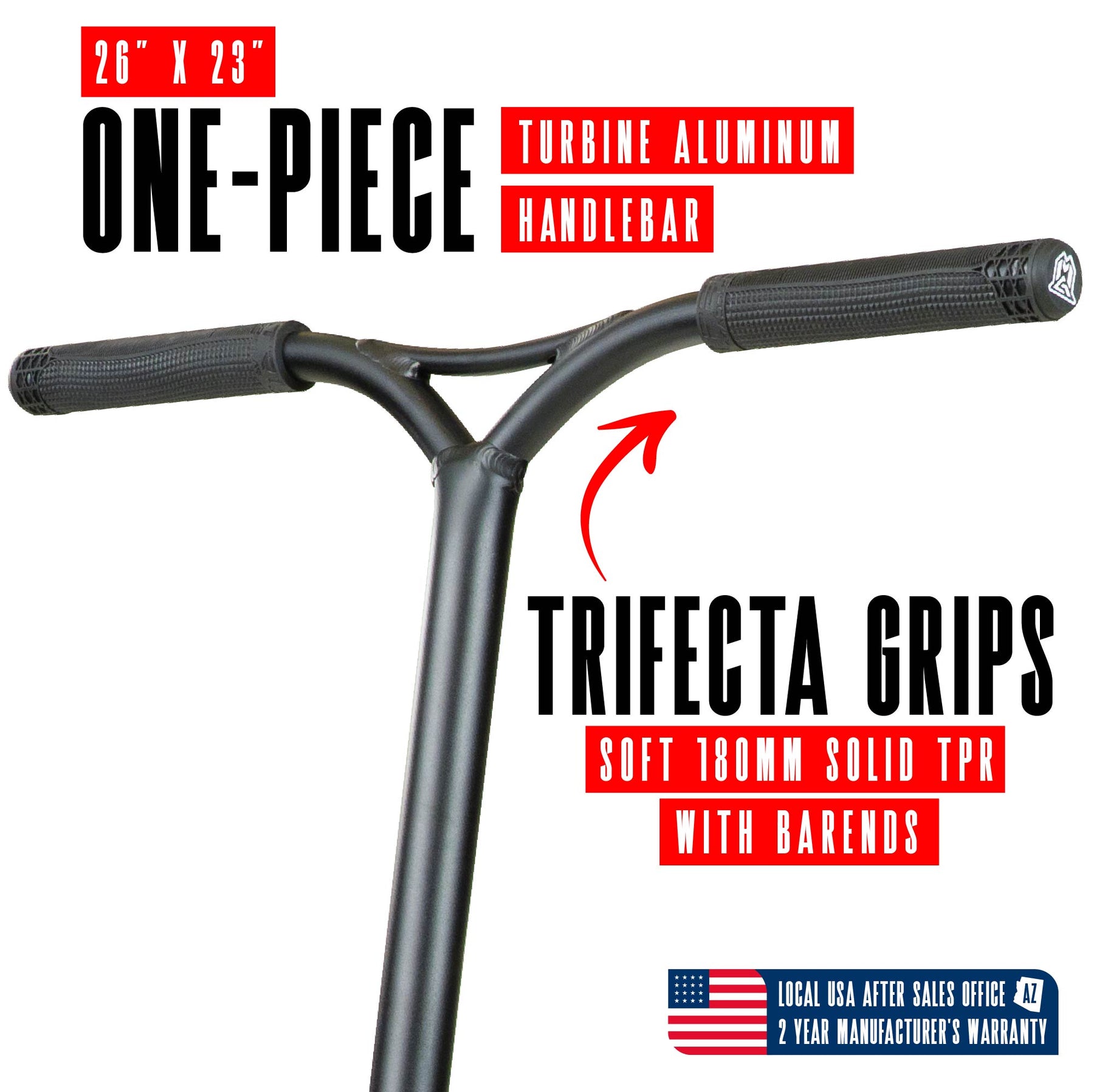 El equipo MGO viene equipado con un fuerte manillar de una pieza de 23" de ancho x 25" de alto y ruedas holográficas de núcleo hueco de 120 mm. Disponible en acabados duraderos con recubrimiento de polvo o neocromo.